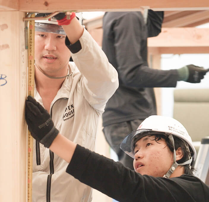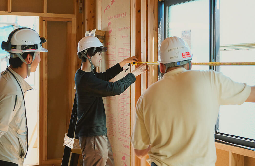 自分たちの目線に立って、支えてくれる熱い社員の方々、初めて会う仲間が徐々にチームとして一体になっていく感覚、自分たちで設計した家が本当に建った時の感動と達成感を是非味わって欲しいです。