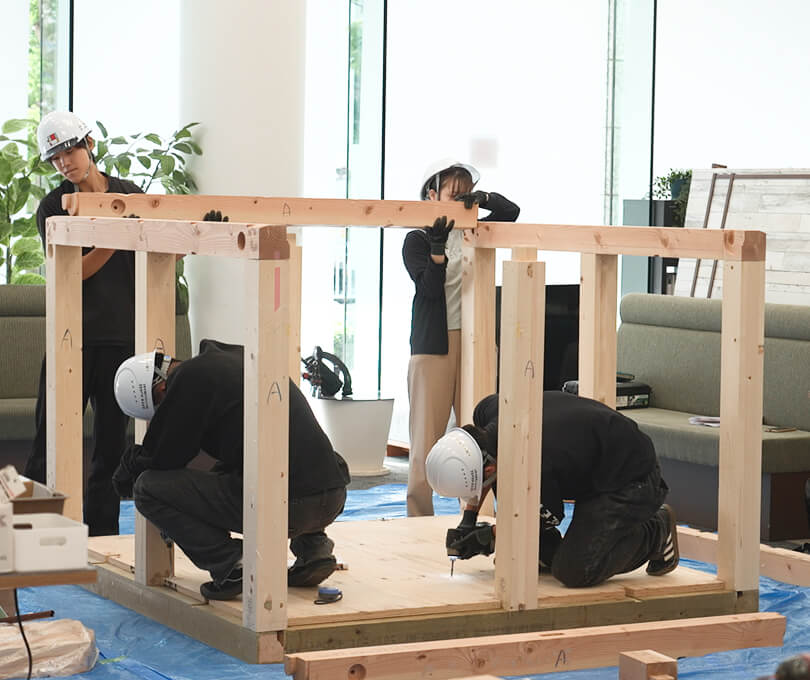実際の施工監督の業務を体感していただけるビジネス型施工監督業体験インターンシップです。工程や予算の検討をはじめ、実際に部材を使って建築物を建てることで、ものづくりの楽しさと施工監督としての介在価値を感じてもらえる、本格的な実戦形式の3日間のプログラムとなっております。